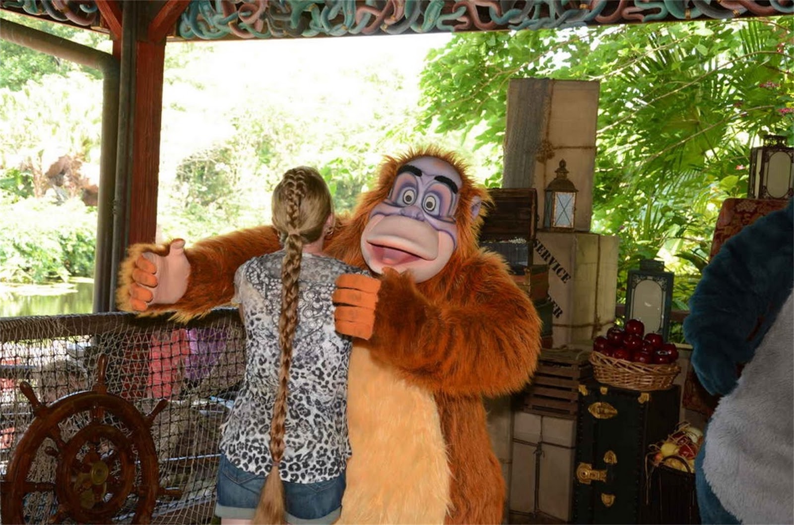Our last day at Disney World, we visited the Animal Kingdom and Hollywood Studios. I made a mohawk French braid, then drew my hair back into a ponytail and braided my ponytail in a four-strand braid. I left the tassel long, and one of the four sections was the braided end of my mohawk. This seemed to add a special touch. It was fun wearing my hair "down" for a change instead of wrapped up in a bun :-)