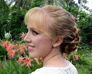 The peach lilies are blooming so beautifully, I never get tired of looking at them. They seemed like the perfect background for my French Rose hairstyle.